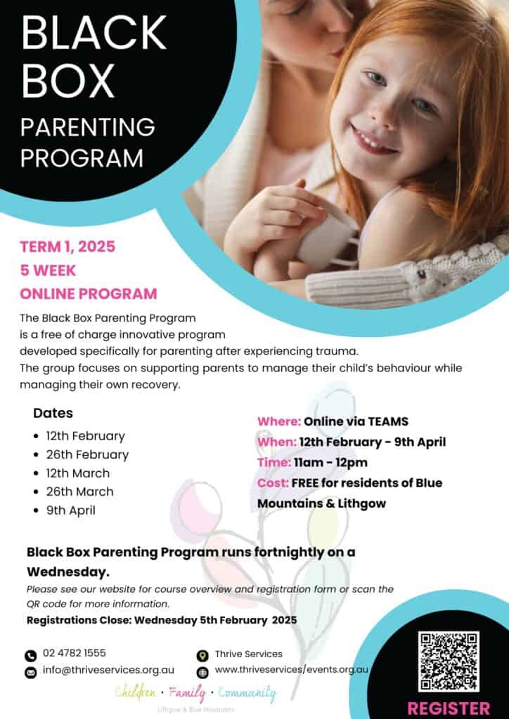 Thrive Services are pleased to facilitate The Black Box Parenting Program is an innovative program developed specifically for the challenges after trauma. The program is a great, non – blaming way to get parents thinking about how they interact with their children and how to manage some of the challenges of parenting after experiencing family violence.