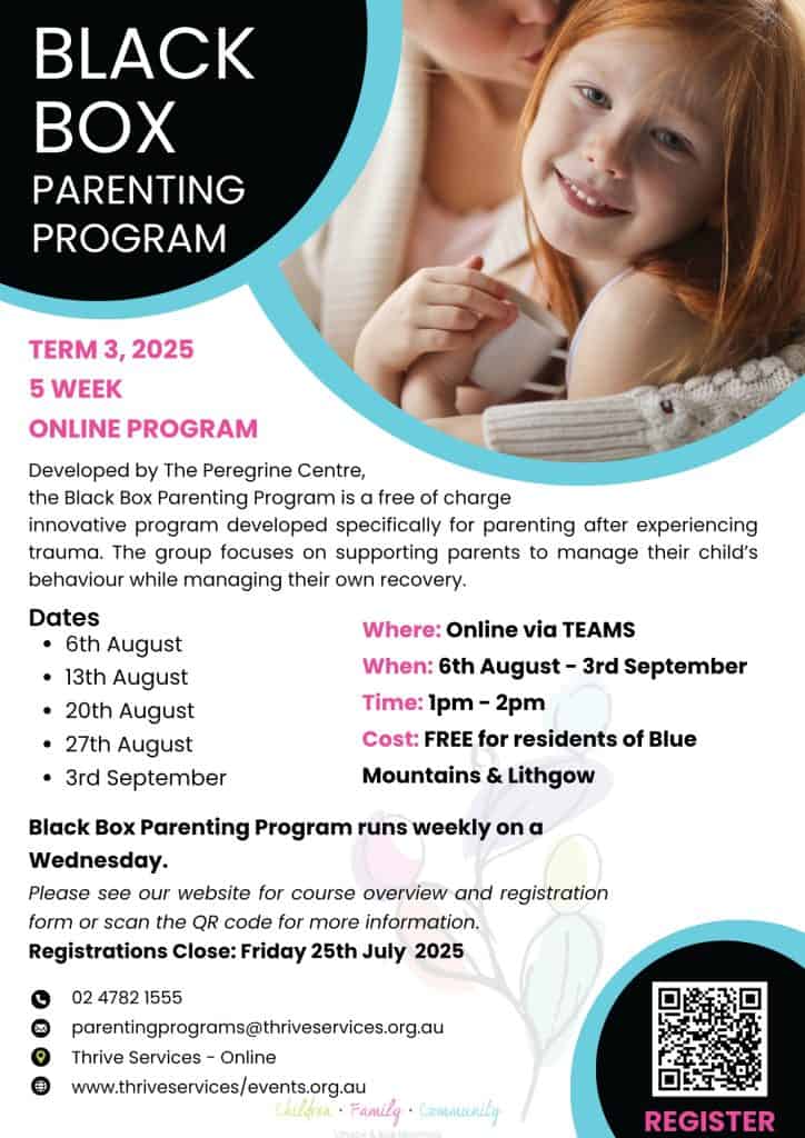 Thrive Services are pleased to facilitate The Black Box Parenting Program is an innovative program developed specifically for the challenges after trauma. The program is a great, non – blaming way to get parents thinking about how they interact with their children and how to manage some of the challenges of parenting after experiencing family violence.