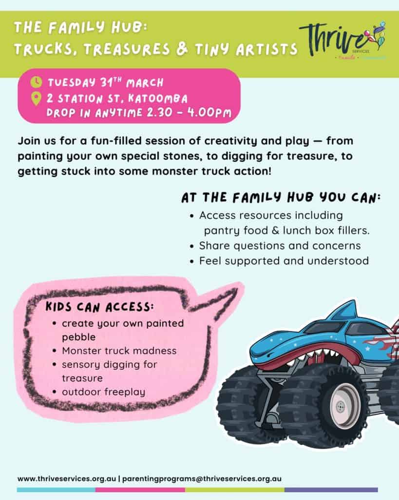 Join us for a fun-filled session of creativity and play — from painting your own special stones, to digging for treasure, to getting stuck into some monster truck action!