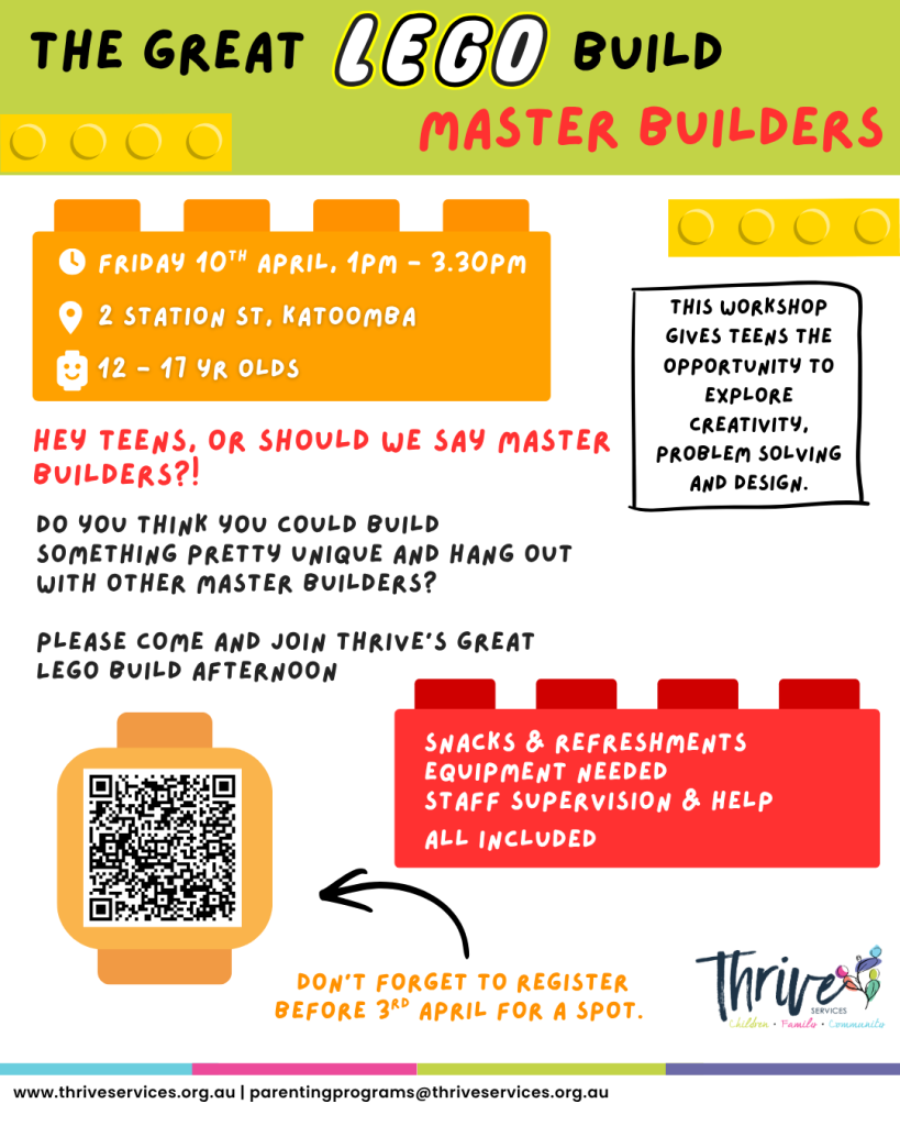 Join us for a fun-filled LEGO afternoon where teens aged 12–17yrs can unleash their creativity, tackle design challenges, and hang out with fellow builders. Whether you’re into architecture, storytelling, or just love a good build, this is your chance to create something truly unique.